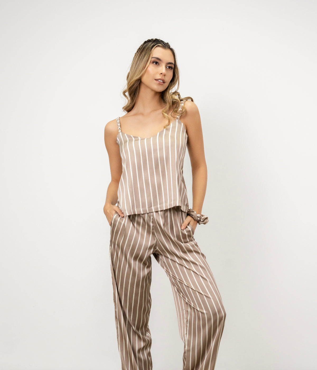 Elaborada en seda de alta calidad, esta pijama ofrece una textura últrasuave brindando frescura y comodidad durante la noche.